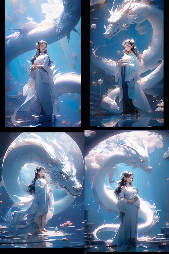 Midjourney Bot 更新时间:2023-12-20 00:00Chinese dragon, cute girl, passionate color contrast, woodcut prints --ar 16:9 --style raw --v 5.2