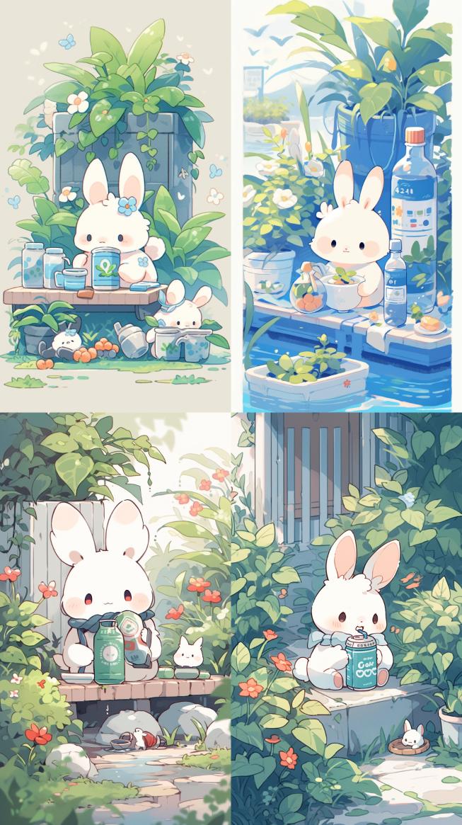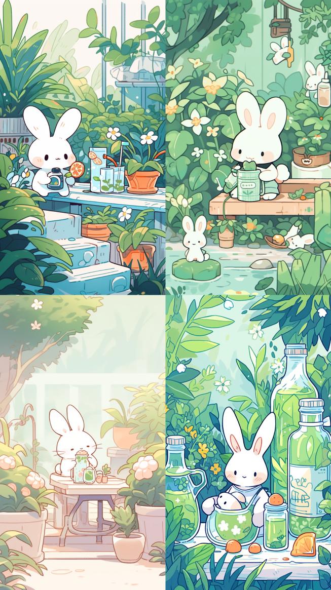 Midjourney Bot 更新时间:2023-12-17 00:05Hand drawn line style, vector illustration, a cute little rabbit drinking juice, green plants, potted plants, daisies, garden scenes, ultra clear picture quality, ultra-high quality, first person perspective, --ar 9:16 --niji 5
