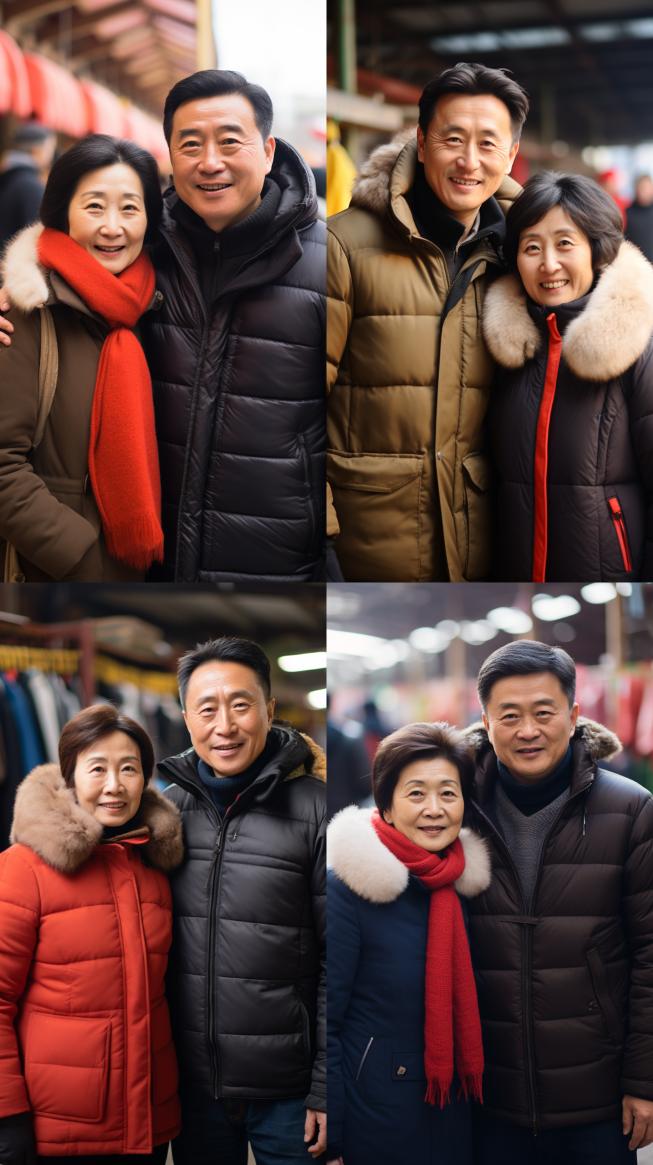 Midjourney Bot 更新时间:2023-12-17 00:06A person in front photo, a Chinese male with a background of a middle-aged woman (who is overall blurry), high resolution, prominent details, and a Chinese middle-aged woman standing behind the man, wearing winter clothes, standing in a wholesale market, ordinary clothing, simple face, sunny smile, square face, with a smile, slight wrinkles, a kind expression, calm eyes, straight facial features, real and delicate. --ar 9:16 --style raw --v 5.2