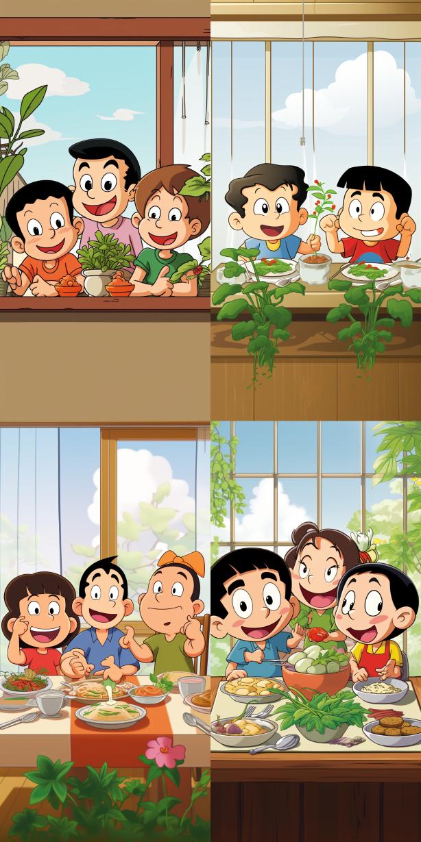 Midjourney Bot 更新时间:2023-12-18 00:01Crayon Shin chan, Shinosuke Nohara, Yoshito Usui, Yoshito Usui, Japanese anime crayon Shin chan, Shin chan, Yoshito Usui, Yoshito Usui. The Shin chan family is eating in a minimalist style, with green plants on the windowsill, European and American style, high-definition details, high contrast, ultimate details, rich colors, and rich details --ar 1:2 --style raw --v 5.2