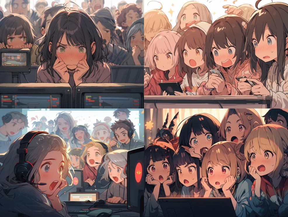 Midjourney Bot 更新时间:2023-12-15 00:00Multiple people watching live broadcasts together, looking nervous --s 266 --ar 4:3 --niji 5