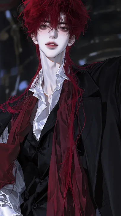 Midjourney Bot 更新时间:2026-03-29 00:11英俊的东亚青年,白皙的皮肤,深棕色眼睛,狭长深情的眼睛,高鼻梁,闭嘴薄唇,((鹅蛋脸)),下颌线分明,五官棱角分明,完美精致的五官,细腻的面部特征,宽肩窄腰,优雅无赖,花花公子气质,意气风发,开朗活泼,高贵不可侵犯的气质,长红色发,三七分刘海部分遮住眼睛,披散着长发,暗黑贵族风的欧式男礼服,黑色收腰西装长外套,白色收腰马甲,黑色高领内搭,酒红色不对称长披风,冷艳贵气,性感,动感姿势, (((((((英俊)))))),陶醉的表情,背景幽暗模糊 --ar 9:16 --niji 7 --profile a6gxx5q --no 仰头,邪笑,血腥,仰视