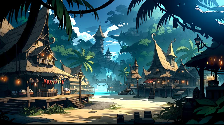 Midjourney Bot 更新时间:2026-03-29 00:11潮湿闷热的东南亚热带丛林营造出神秘孤独的冒险感,城镇小道,热带海岛,中世纪海盗城镇,建筑密布,酒馆,炼金铺,饭馆,青楼,码头,灯塔,街道,贫民窟,清晰,专业构图视角,笔触细腻,电影构图,高级动漫风格,8K超高清,高质量图像,强纹理细节,线条细致,极致细节,二次元动漫,2D日漫风格 --ar 16:9 --c 18 --weird 188 --stylize 260 --niji 7 --sref https://images.gogpt.vip/aigf/origin/20260328/1774661727210841_1.png https://images.gogpt.vip/aigf/origin/20260328/1774704214597034_1.png https://images.gogpt.vip/aigf/origin/20260328/1774704841438865_2.png https://images.gogpt.vip/aigf/m_origin/20260324/2087008/dk6uujnqucm6imjc.png