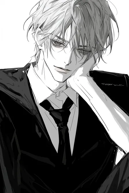 Midjourney Bot 更新时间:2026-03-29 00:21https://images.gogpt.vip/aigf/m_origin/20260328/1771643/bste5bmom8k5hh11.jpg https://images.gogpt.vip/aigf/m_origin/20251023/1771643/4btabw7fzp66hh99.jpg https://images.gogpt.vip/aigf/m_origin/20260209/1771643/vncguf9rhawvx1nn.jpg 一位年轻男性的插画,身穿黑色西装,展现出一种成熟而优雅的气质。他坐在椅子上,姿态显得放松且沉思。整体画面传达出一种冷静和神秘的氛围,背景为纯白色,突出角色的形象与细节,给人一种深邃且吸引人的感觉。画风现代而简约,充满艺术感。一只手撑着脸。漫画画风。全身!浅色头发,俯视 --ar 2:3 --style raw --stylize 100 --niji 6 --sref https://images.gogpt.vip/aigf/m_origin/20250822/1771643/nv2dkr1rkx1ao9gn.jpg https://images.gogpt.vip/aigf/m_origin/20250819/1771643/vsa9ul5kkw9kli4u.jpg --sw 314 --profile zdd71yn --no Don't wear glasses.