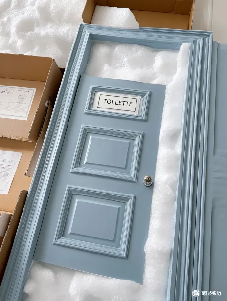 Midjourney Bot 更新时间:2026-03-29 00:30https://images.gogpt.vip/aigf/m_origin/20260329/1973030/y1d7fjco2u21rn9f.jpeg 一扇优雅的蓝色门,门上方有一个标识牌,上面写着“TOILETTE”。门的设计简约,带有几道精致的框线,展现出经典的风格。周围有白色的泡沫包装材料,保护门的表面,旁边放着一根青色的装饰条。背景有纸箱,营造出一种未安装的新家居氛围。整体画面干净整洁,色调柔和,给人一种温馨的感觉。 --ar 3:4 --v 7 --stylize 100 --iw 2