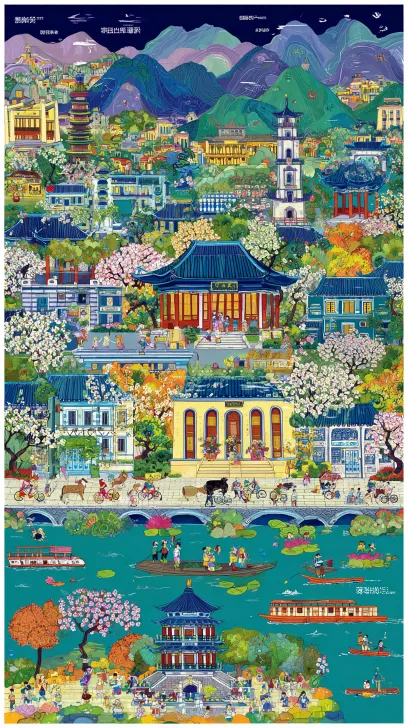 Midjourney Bot 更新时间:2026-03-29 00:40https://images.gogpt.vip/aigf/m_origin/20260329/2107978/sn2brdc2x54g6c1f.jpg 请生成一幅中国农民画风格的插画,主题为“江北水城·聊城梨园春”。画面需包含以下元素: 前景:大片盛开的梨树,花朵洁白,枝干用粗黑线条勾勒,形态夸张;树下是平原地形,无山脉;加入鲁西黄牛在树下吃草,或农民正在给梨树授粉、修剪枝条。 中景:光岳楼的剪影,或京杭大运河的船只;体现“平原”特征,地平线平直开阔。 背景:可加入现代元素,如骑行的人群、现代商业街区,或传统岭南民居与现代高楼并存。 风格与氛围:色彩高饱和度(大红、大绿、明黄、艳蓝),对比强烈;构图饱满、热闹,不留大面积空白;无视透视关系,具有装饰性;整体氛围喜庆、丰收、生机勃勃。 进阶技巧 色彩控制:使用“高饱和度”、“对比强烈”等词,避免AI生成写实照片。 构图控制:强调“构图饱满”、“不留大面积空白”,确保画面热闹。 地域特征:明确提及“光岳楼”、“京杭大运河”、“鲁西黄牛”等聊城特有元素,避免AI生成通用果园。 --ar 9:16 --v 7 --stylize 100 --iw 0.25 --sref https://images.gogpt.vip/aigf/m_origin/20260329/2107978/arruaskq1e12nkwm.jpg