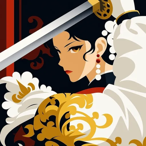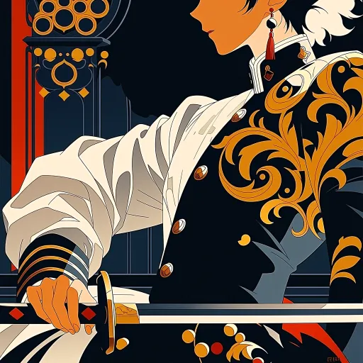 Midjourney Bot 更新时间:2026-03-27 00:17这幅插图展示了一位身穿华丽服饰的角色,着装上有精致的金色装饰和复杂的花纹,色彩以深色调为主,搭配和白色的细节。角色手中握着一把剑,姿态优雅且充满力量,似乎正在准备进行一场战斗。背景的设计与角色服饰相辅相成,整体构图展现出浓厚的东方风格,细腻的线条和丰富的装饰元素相结合,营造出一种神秘而强烈的氛围。 --ar 1:1 --stylize 250 --niji 7 --sref https://images.gogpt.vip/aigf/origin/20260326/1774540501357983_4.png --sw 156 --no realistic photo,complex background