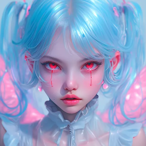 Midjourney Bot 更新时间:2026-03-27 00:20写实,少女,脸颊流淌红色液体,粉蓝色双马尾大波浪头发,红色眼睛,粉色天使翅膀,疯批感,病娇,电影级光线,明亮的眼睛,精致的妆容,精致的配饰,8k分辨率,真实感,极致细节,超高清,柔和,最高品质 --ar 1:1 --stylize 100 --niji 6