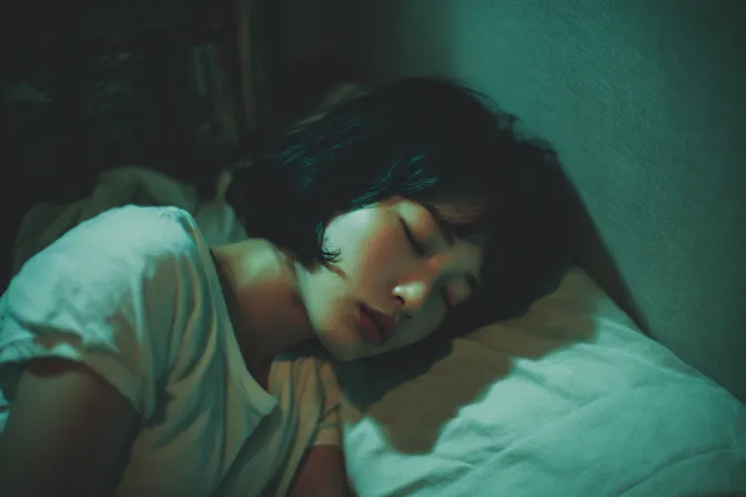 Midjourney Bot 更新时间:2026-03-27 00:20俯拍角度,一位亚洲少女仰面脸朝上躺在单人床上,黑色短发,素颜面容,白色短袖,闭着眼睛,夜晚自然入睡,灯光为冷色调且昏暗,环境狭窄逼仄,真人写实风格,电影感画质,高清,8k分辨率,极致细节,柔和的阴影,浅景深,氛围寂静,皮肤质感真实,弱光环境,胶片质感,私密氛围--风格 写实--质感 增强--高清 --ar 3:2 --v 7 --stylize 100 --no 不要化妆、不要耳环首饰、不要花纹衣物、不要过曝、不要塑料感、不要摆拍感