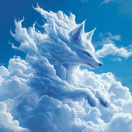 Midjourney Bot 更新时间:2026-03-27 00:24蓝天白云的天空中,白云形成的巨大狐狸,白云云形成的毛发,错误的视觉,非常逼真,动态,高清,栩栩如生,唯美,真实 --ar 1:1 --v 6.1 --stylize 100