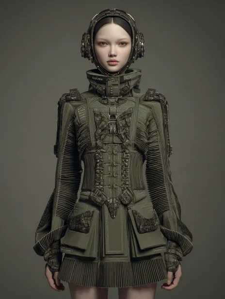 Midjourney Bot 更新时间:2026-03-27 00:24帮我生成一个模特服装设计全身效果图,,包含模特从头到脚全部包含,模特头身比例协调,模特风格为未来复古主义的,包含科技时尚,科幻,特写,需要根据垫图的内容生成 细腻肤质,最佳质量,超高清,16K质量,高分辨率,虚幻引擎5,复古未来主义,超细节,超模,拟真感,复杂细节,未来主义,电影质感,超精细,超写实, --ar 3:4 --v 7 --stylize 100