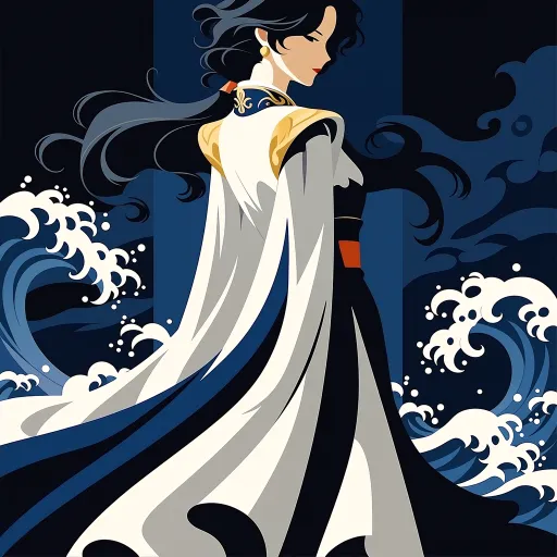 Midjourney Bot 更新时间:2026-03-27 00:27这幅插图展现了一位优雅女性的角色,身穿华丽的长袍,袍子以白色为主,搭配深蓝色和精致的金色细节。角色的长发柔顺飘逸,背景中有翻腾的海浪和装饰性的云朵,增添了动态感。整体画面采用深色调,营造出神秘而宁静的氛围。细腻的线条和丰富的纹理使得每个元素都栩栩如生,传达出一种优雅与力量交织的美感。 --ar 1:1 --stylize 250 --niji 7 --sref https://images.gogpt.vip/aigf/origin/20260326/1774540501357983_4.png --sw 156 --no realistic photo,complex background