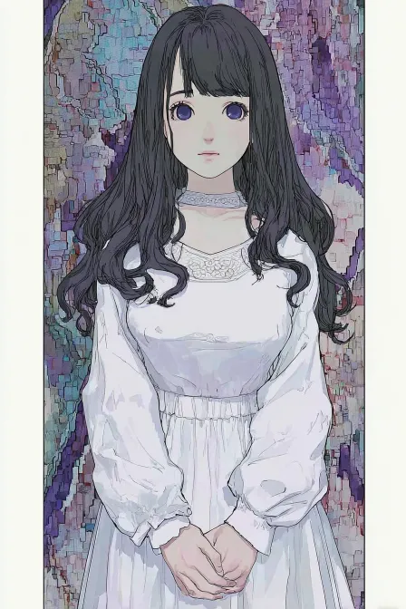 Midjourney Bot 更新时间:2026-03-27 00:28根据以下提示词并参考图像中的画面风格生成一个纯白底人物正面站立全身像,人物描述: 一位14岁少女,身高1.6米,身形纤弱,处于灵魂状态。黑色中长发,面容极淡,五官写实(非萌系大眼睛),脸色苍白如纸,眼神空洞无神,仿佛没有焦点。身穿纯白色连衣长裙,质感轻盈半透明。细节丰富,色彩柔和。 --ar 2:3 --v 7 --stylize 100 --sref https://images.gogpt.vip/aigf/m_origin/20260326/2105442/yfocvoal5pgq0lyj.jpg