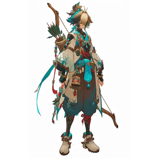 Midjourney Bot 更新时间:2026-03-26 00:24身形修长如青竹,墨色短发用竹簪束起,额前碎发垂落,眼尾带着竹叶状的墨色纹。上身是交领短打劲装,面料为染成竹青的粗麻布,袖口与衣摆绣着水墨竹枝纹样,腰间系着藏青色宽布腰带,悬着竹制哨子与装着驱虫草药的锦囊;下身是收口裤,脚蹬麻线编织的云纹布鞋,小腿缠着防刮的藤条护腿,背后斜挎着一把用老竹削成的短弓,箭囊里插着涂有迷迭香汁液的竹箭 --ar 1:1 --stylize 100 --niji 7 --sref https://images.gogpt.vip/aigf/m_origin/20260326/2101667/axyjvs34ya6d0fxd.jpg --sw 112