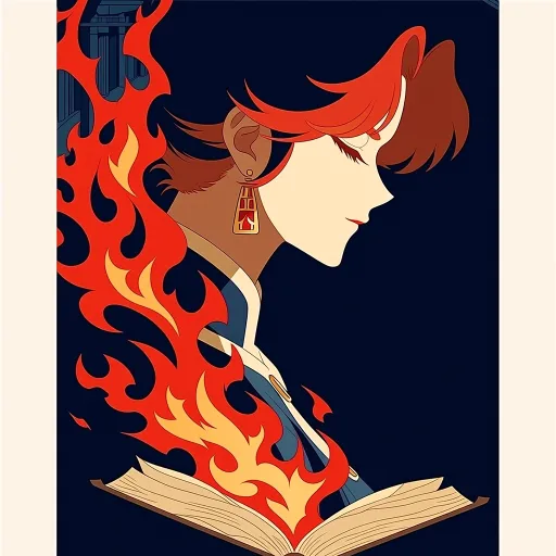 Midjourney Bot 更新时间:2026-03-27 00:01这幅插图展现了一位女性角色,她的头发是鲜艳的红色,造型优雅,身后燃烧着火焰。火焰的颜色由橙色渐变为红色,形成动态的视觉效果。角色的侧脸轮廓清晰,表情平静,仿佛在看一本深奥的古书。整体设计采用了简约的风格,背景为深色,与火焰形成鲜明对比,营造出一种强烈的视觉冲击力和神秘感。制作一个品牌LOGO --ar 1:1 --stylize 250 --niji 7 --sref https://images.gogpt.vip/aigf/m_origin/20260326/2090711/cfh0x7qon4b1zzah.png --sw 156 --no realistic photo,complex background