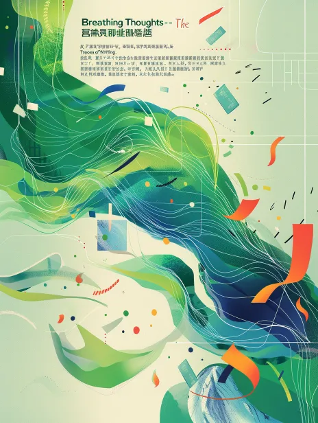 Midjourney Bot 更新时间:2026-03-27 00:14https://images.gogpt.vip/aigf/m_origin/20260327/619947/57nab9drkhx7ztf9.png 彩色展览海报设计,主题“会呼吸的思想——写作的涨落与痕迹” 画面中有一条动态流动的绿色形态,类似河流或气流,在画面中延展,呈现出呼吸般的扩张与收缩节奏 流动结构内部由抽象的写作元素构成,如弯曲线条、修改符号、标记、文字碎片,像粒子一样漂浮 画面周围加入富有趣味的元素:漂浮的纸张、墨点、由线条构成的抽象小鸟、碎片围绕中心运动 背景为抽象图形化设计,由大面积柔和色块(绿色、蓝色、浅黄)拼接构成,形成类似版式设计中的构成关系 叠加轻微颗粒感、纸张肌理与透明线性图案(如网格、波纹、手写痕迹) 背景有前后层次变化,远处模糊、近处清晰,增强空间感 整体像现代设计展海报背景,而不是单纯纯色或渐变 构图采用俯视或倾斜视角,整体具有强烈的流动感与节奏感 风格为扁平插画结合平面设计,色块大胆、轮廓清晰,画面丰富但有秩序 色彩以鲜艳绿色为主,搭配橙色、黄色、蓝色等高对比色点缀 具有海报版式感,视觉中心明确 有创意、有活力,但不杂乱、不随意,背景与主体层次分明 --ar 3:4 --v 6.0 --style raw --stylize 100