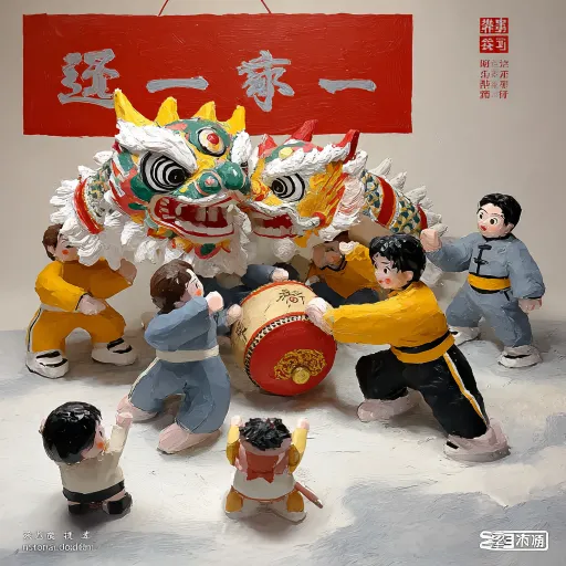 Midjourney Bot 更新时间:2026-04-05 00:32https://images.gogpt.vip/aigf/m_origin/20260405/2109441/pdhqene0vo70y3eq.jpg 一组色彩鲜艳的手工雕塑,展示了传统的舞狮表演场景。中心是几个人在舞一条华丽的龙,龙头上饰有红色和绿色、黄色的细节,面部表情生动。旁边有一位身穿黄色服饰的舞者正在敲击红色的鼓,鼓上有金色的装饰。周围围绕着几位不同发型和服装的小人物,似乎在观看表演,神情各异,表现出兴奋和好奇。背景有一面红色的横幅,上面写着中文文字,增添了节日的氛围。整个场景生动有趣,富有动态感,展现了传统文化的魅力。 --ar 1:1 --v 7 --stylize 100 --iw 0.25 --sref https://images.gogpt.vip/aigf/m_origin/20260405/2109441/jhjq20yjpawezq3c.jpg --sw 677