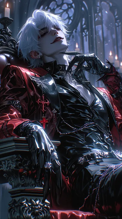 Midjourney Bot 更新时间:2026-04-05 00:32美少年,男性恶魔角色,CG渲染,8K高清,慵懒妖媚氛围感 2. 五官细节 俊美邪魅的男性面容,五官绝美,冷冽狭长眼型,睫毛长,嘴角微扬带轻佻微笑,冷白皮肤,精致立体五官,黑色弯角恶魔角,银白长发。面部清晰。 3. 衣着服饰 红黑撞色紧身皮质连体衣,黑色亮面腰封,银色链条装饰,红色十字挂坠,黑色皮质手套,金属腕带 4. 姿势动作 慵懒斜躺于雕花石台上,身体后仰,单手撑台,另一只手抬起,修长手指微曲,肌肉线条饱满流畅,红色恶魔尾自然卷曲 5. 道具 黑色利爪状指套,银色金属戒指,发光符文装饰,红色恶魔尾 6. 背景 哥特式雕花宫殿,复古木质窗棂,暖光烛火点缀,暗紫色氛围,前景虚化,氛围感拉满 --ar 9:16 --stylize 874 --niji 7