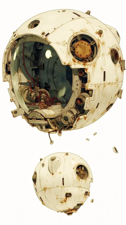 Midjourney Bot 更新时间:2026-04-05 00:32https://images.gogpt.vip/aigf/m_origin/20260404/2099375/jmj7jyp55t4pv2kk.jpg 科幻悬浮探测机器人,造型圆形,细节设计:做旧的白色壳、少量裸露的管线、锈迹污渍,极简的面部设计 --ar 9:16 --stylize 346 --iw 0.25 --niji 7