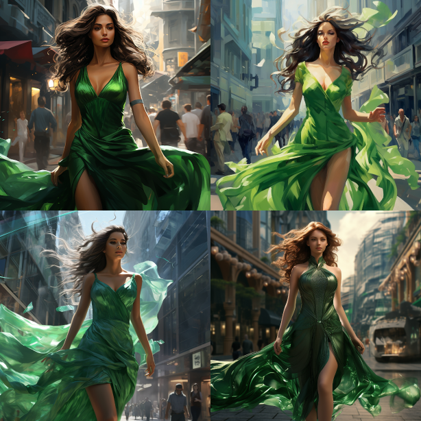 Midjourney Bot 更新时间:2023-08-26 15:50On a busy city street, a stunning green-clad beauty appeared. She was draped in a bright emerald green robe, as if she were the most captivating jade gemstone in nature. Her long hair cascaded down to her waist like a waterfall, with each strand shimmering with a faint glow, as if green elves were dancing in the breeze. Her deep and bright eyes were like two lakes reflecting the sunlight, adorned with green gemstones. She walked gracefully and confidently through the crowd, with each step seemingly emitting a mysterious charm, attracting passersby to stop and gaze. The surrounding buildings and streets suddenly seemed to respond to her presence, with lush vines blooming on the walls and trees swaying elegantly by the roadside. This green-clad beauty was undoubtedly the most enchanting sight in the city, giving people a sense of freshness, vitality, and hope. Her existence seemed to cast aside the hustle and bustle and pressures of the city, allowing people to feel the tranquility and harmony deep within their hearts. --ar 1:1 --style raw --v 5.2