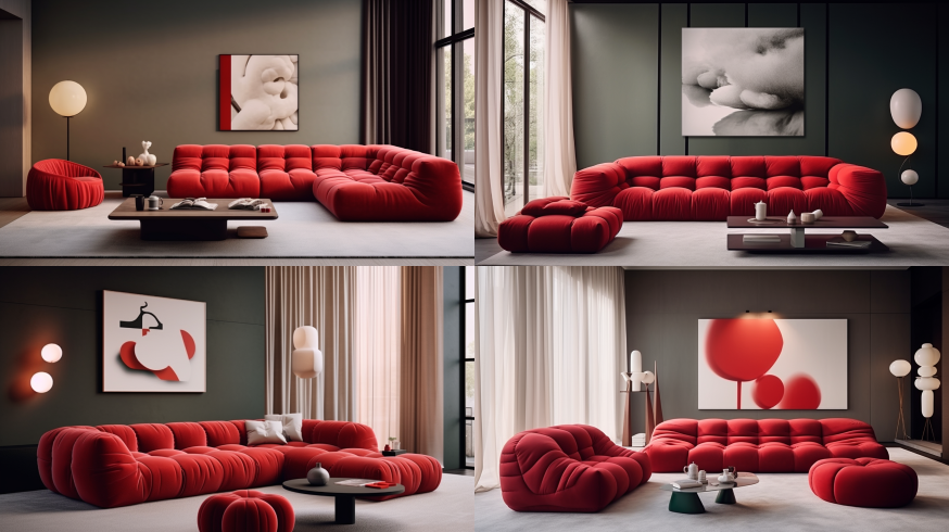 Midjourney Bot 更新时间:2023-08-26 14:35Based on the image as a model, a large red sofa was designed with smooth lines, square armrests, full soft bags, minimalist Italian style, square foot pedals and coffee tables, creating a warm and comfortable scene. The minimalist interior design should not change the overall shape, and wrinkles should be reflected in details,,minimal interior design::3 --ar 16:9 --style raw --v 5.2