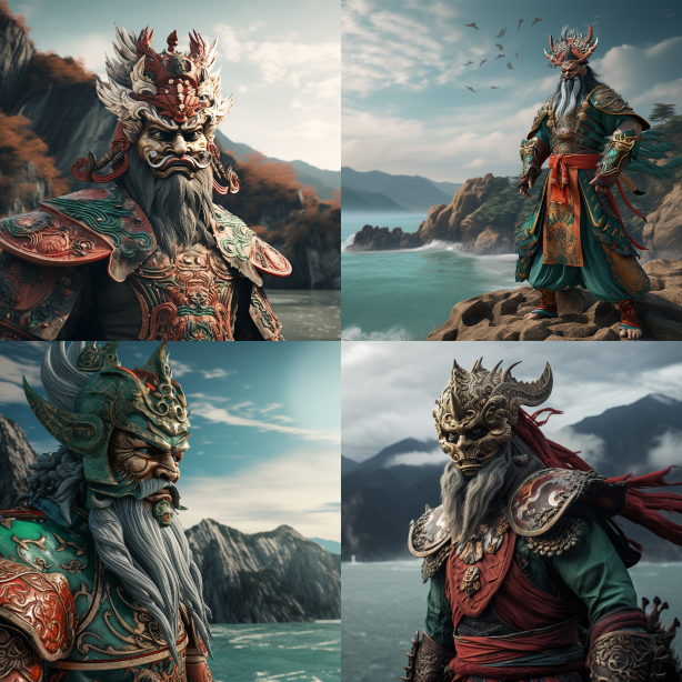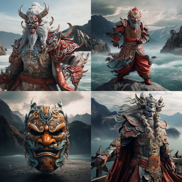 Midjourney Bot 更新时间:2023-08-26 14:38Guan Yu,documentary photography,3D rendering,Chinese opera mask,Mountains and Seas Sutra,Rocker fashion,game assets --ar 1:1 --style raw --v 5.2