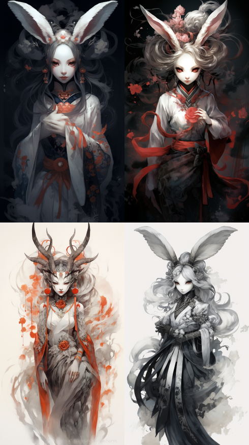 Midjourney Bot 更新时间:2023-08-26 14:31Rabbit Demon, an Eastern classical beauty with an ink wash style. --ar 9:16 --style raw --v 5.2
