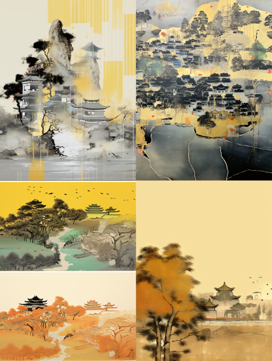 Midjourney Bot 更新时间:2023-08-26 14:32An Ancient Landscape painting, sections a,Poetic, invisible Chinese architecture, and the,Prospect is a Chinese towel In the foreground,Of the long scroll, the buildings are highlighted,In gold No other mixed colors were added to,The building Against a matte black,Background Trees and employees adult,Seven, --c 31 --iw 0.5 --ar 3:4 --style raw --v 5.2