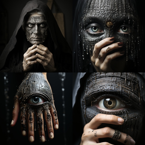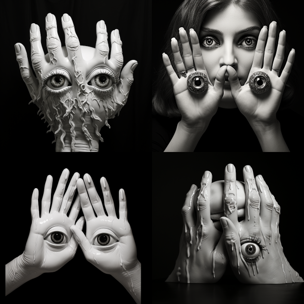 Midjourney Bot 更新时间:2023-08-26 14:37Black and white, mystical manuscript, one hand with eyes, five fingers --ar 1:1 --style raw --v 5.2 --s 750