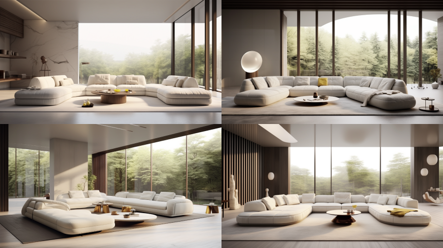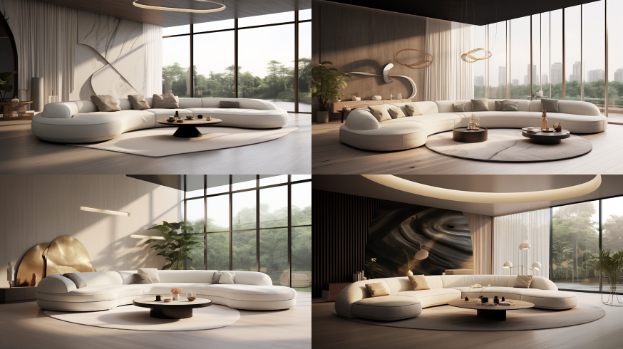Midjourney Bot 更新时间:2023-08-26 14:30Based on the image as a model, a large and irregular sofa was designed, consisting of a white velvet sofa with smooth lines, square armrests, a full soft bag, a minimalist Italian style, circular mats and coffee tables, creating a warm and comfortable scene. The minimalist interior design should not change the overall shape, with extreme details,minimal interior design::3 --ar 16:9 --style raw --v 5.2