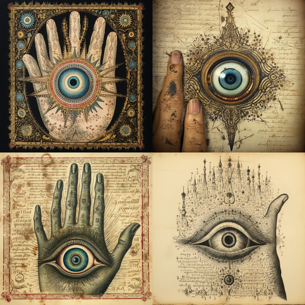 Midjourney Bot 更新时间:2023-08-26 14:32Sacred, eye-filled hand, vintage manuscript, mysticism. --ar 1:1 --style raw --v 5.2