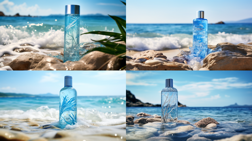 Midjourney Bot 更新时间:2023-08-26 14:32Product photography: Place a bottle of blue shower gel on the seaside reef. The natural light background is waves. High quality, high-definition, and clear Sony cameras have a telephoto F1.2 large aperture --ar 16:9 --style raw --v 5.2