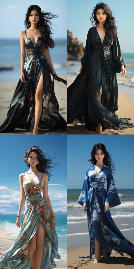 3D black-haired Chinese beauty strolling on the beach in a long dress, captured in a realistic photo style. --s 307 --c 15 --ar 1:2 --style raw --v 5.2