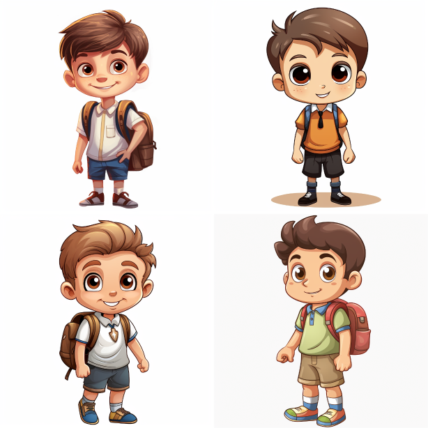 First grade cartoon boy --ar 1:1 --style raw --v 5.2