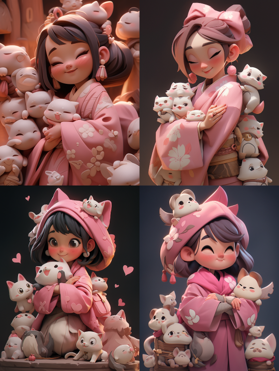 A girl in a bright pink hanfu, with soft pink pets flashing around her in the wind, looking at the camera, smoothing soft, eyes sparking, pink and white palettes, soft lighting, IP, Blind Box, mini figures, toys, 3D, C4D, OC render, Super cut little girl, Clay texture, Bokeh, bright, Chest shot, Clay texture, Bokeh, bright, Chest shot Clay texture, Bokeh, bright, wait shot --ar 3:4 --style expressive --niji 5 --s 750