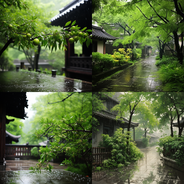 Qingming, rain, green leaves. --ar 1:1 --v 5.2 --style raw