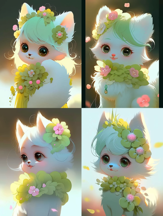 Cut putty with flowers with green hair, in the style of colored animation stills, 32k uhd, anime art, minimal quality, semantic cats, detailed details, metallic design --iw 2 --ar 3:4 --style expressive --niji 5