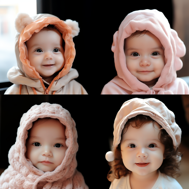Baby girl --ar 1:1 --v 5.2 --style raw --s 750