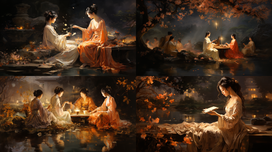 Oil painting style, the brightly lit night of the Tang Dynasty --ar 16:9 --style raw --v 5.2 --s 250