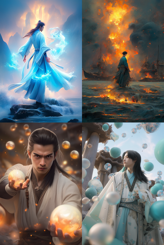 Masterpiece, best quality, 8k, insene details, integrated details, hyperdetailed, super quality, high detail, ultra detailed, Masterpiece, primary arts, A young man in ambient China, dressed in cyan Hanfu, surrounded by gas fuels in balls, primary arts action ports, Gopro, motion blur, long exposure, full body, delete feature, high aesthest tic s and high art, integrated in cellular atmosphere, With an unreal portal style, Paulina Washington Chinese, ink painting, realism, primary arts, play light and shadow, green lights and shadow, Bauhaus photography, 28mm fantasy landscape, Camille Court, Selective focus, Panorama, Ultra realistic illustrations, REALIST 3D, ULTRA DESTAILED Blender, C4D, high detail, high resolution, 32K, --s 58 --c 4 --ar 2:3 --niji 5