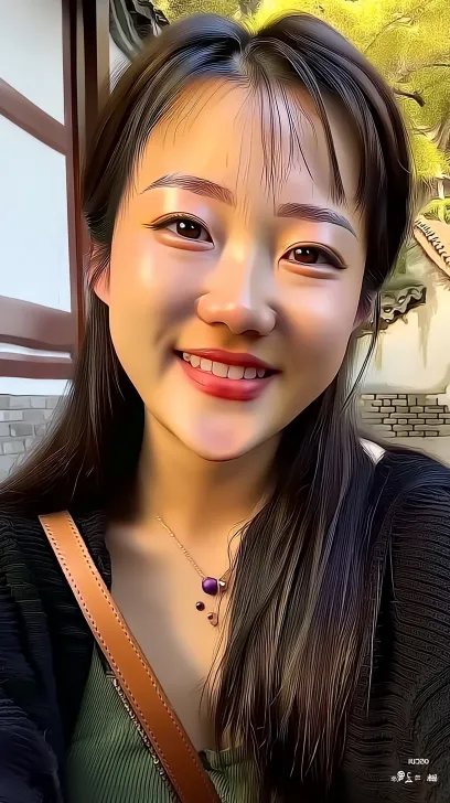 Midjourney Bot 更新时间:2026-03-24 00:02https://images.gogpt.vip/aigf/origin/20260323/1774274936811199_3.png https://images.gogpt.vip/aigf/m_origin/20260323/583231/6qboujqly6mnaox0.jpg 人物面部特征与参考图一致:深色长发配细碎刘海,暖棕色眼睛,温柔微笑露出上排牙齿,自然妆容。服装:绿色,带紫色小椭圆吊坠的银项链,棕色皮质肩带。背景:户外传统庭院,石板路、绿树、木格窗,温暖自然光。写实人像,4K,面部清晰对焦,自然皮肤纹理,面部与肢体无畸变。 --ar 9:16 --v 7 --stylize 100 --sref https://images.gogpt.vip/aigf/origin/20260323/1774274936811199_3.png --oref https://images.gogpt.vip/aigf/origin/20260323/1774274936811199_3.png --ow 400