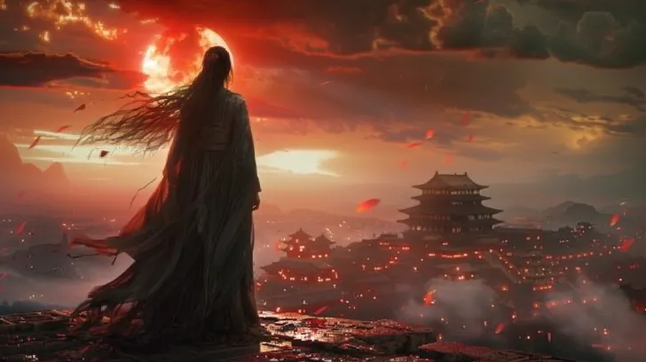 Midjourney Bot 更新时间:2026-03-24 00:0515秒连贯电影长镜头,渐进式匀速向前推镜,中国神话堕恶之仙,仙魔对冲的极致张力,开场全景镜头:立于崩塌九重天废墟之巅的恶仙,背景是翻涌的墨色雷云、血色残阳、漂浮的破碎仙器与陨落的天宫残垣,镜头15秒匀速向前推进,逐渐聚焦到人物主体:身着黑金残破广袖仙袍,衣摆绣着枯骨桃花暗纹,墨色长发与破碎衣袂在狂风中剧烈翻飞,手持一柄剑刃淌血的上古仙剑,周身环绕着暗金色仙力与黑色魔气交织的流光,冷玉般的绝世容颜,眼尾染血,暗红瞳孔里藏着倾覆三界的疯戾与悲悯,镜头推进的最后3秒定格在人物面部特写,发丝与衣料的动态丝滑连贯,超精细8K画质,电影级史诗光影,极强的明暗对比,暗黑国风工笔画结合超写实风格,画面全程无跳变,主体固定不动,仅镜头匀速推近 --ar 16:9 --v 6.0 --style raw --stylize 250