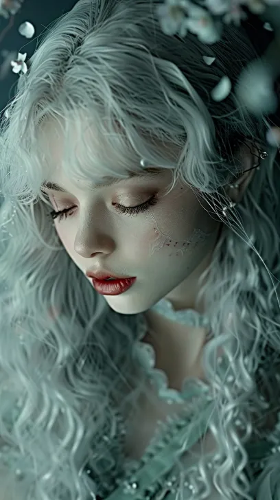 Midjourney Bot 更新时间:2026-03-24 00:0515秒竖屏电影镜头,缓慢环绕式运镜+轻微向前推镜,9:16画幅,雌雄同体的疯批恶仙半身特写,冷玉般苍白的肌肤,银白渐变墨黑的长发无风自动,眼尾一颗猩红泪痣,半阖的眼眸里是暗金与暗红交织的瞳孔,唇角带着似笑非笑的疯戾温柔,唇角沾着一丝血迹,身着半透的残破白纱仙裙,衣料上带着暗血色纹路,周身环绕着淡淡的仙雾与黑色魔气交织的流光,背景是朦胧的迷雾枯桃林,花瓣在风中缓缓飘落,15秒镜头全程丝滑环绕,主体位置固定,光影柔和却冷冽,浅景深,油画质感,暗黑美学,超精细皮肤纹理与发丝细节,8K超写实画质,画面无跳变,动态连贯自然 --ar 9:16 --v 6.0 --style raw --stylize 280