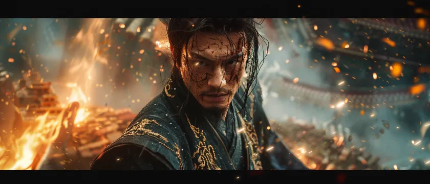 Midjourney Bot 更新时间:2026-03-24 00:0915秒电影级宽屏长镜头,低角度仰拍,镜头匀速向上拉升+轻微向前推镜,21:9画幅,杀伐恶仙,仙骨魔魂的极致对冲,开场镜头聚焦于淌血的仙剑剑刃与脚下崩裂的天宫玉石地面,镜头15秒匀速向上拉升,完整展现人物全身:高挑矜贵的身形,身着黑金刺绣广袖仙袍,衣摆残破翻飞,周身环绕着毁天灭地的暗金仙力气旋,墨色长发在狂风中狂舞,一手持滴血仙剑,一手抬诀,背景是崩塌的天宫大殿、炸裂的雷光、漫天飘落的仙宫残片,人物眉眼清冷锐利,瞳孔里翻涌着疯魔的杀意,镜头拉升的最后2秒定格在人物凌厉的眼神特写,全程画面主体固定,仅镜头运动,动态丝滑连贯,史诗级氛围感,电影级杜比光影,超精细8K画质,暗黑国风幻想风格,超写实细节,无画面跳变 --ar 21:9 --v 6.0 --style raw --stylize 220