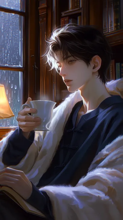 Midjourney Bot 更新时间:2026-03-24 00:09https://images.gogpt.vip/aigf/m_origin/20260314/2045420/39zyugwtdr1otzxd.png https://images.gogpt.vip/aigf/m_origin/20260320/2045420/gh2ukk0j2e0zh800.png https://images.gogpt.vip/aigf/m_origin/20260322/2045420/wceakx63f12lfc4k.jpeg https://images.gogpt.vip/aigf/m_origin/20260321/2045420/o48xzqv78hzo8x2e.jpeg https://images.gogpt.vip/aigf/m_origin/20260314/2045420/pyep20zg2iprnalr.png https://images.gogpt.vip/aigf/m_origin/20260321/2045420/ngi7ni425m8l3cr1.jpeg https://images.gogpt.vip/aigf/m_origin/20260322/2045420/5s1szkk8jzr9b1r7.jpeg https://images.gogpt.vip/aigf/m_origin/20260319/2045420/8zffyghxiopz5gst.png https://images.gogpt.vip/aigf/m_origin/20260318/2045420/yby6r5ir915812ud.jpeg https://images.gogpt.vip/aigf/m_origin/20260320/2045420/otsd64n9h23c9yqa.jpeg 漆黑中短发梳理得整洁利落,鬓角掺着几缕白发,沉静而温和的茶褐色眼瞳,32岁男性,五官俊朗温润,薄嘴唇,鼻梁笔挺,有着温和中庸的书卷气与武者的坚毅,整体气质儒雅内敛,坐在窗旁的靠背椅里,身穿一件深蓝色的中式盘扣长衫,外披一件柔软的白色大衣,左手捏着一个青花瓷无柄杯,右手拿着一本书。复古书房背景,木质书架摆满精装旧书,深色木质边几上放着一盏微亮的暖黄色台灯,窗外窗玻璃流淌着雨痕,灯光投下柔和阴影,氛围静谧,写实风格,柔和光影,细节丰富,电影感构图,8K分辨率,超精细画质,清晰对焦面部特写,优雅宁静的情绪基调,二次元伪厚涂,国风感手绘质感的笔触,发丝根根分明 --ar 9:16 --c 22 --stylize 175 --iw 0.3 --niji 7 --no 戒指,耳环,项链
