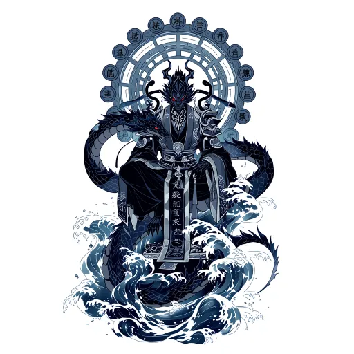 Midjourney Bot 更新时间:2026-03-24 00:10玄武: 杰作,最佳质量,超高细节,Q版山海经玄武拟人,中式古风,玄武特征融入人偶造型:龟蛇合体之相,灵龟匍匐为基,神蛇缠绕为枢,通体玄黑,甲壳承载洛书纹样;双目如赤焰灼灼;沉静深邃表情,传统汉服,盘腿坐于玄水波涛基座之上。足踏沧浪镇北冥,身后大型玄武纹圆环,蛇尾曳出浩瀚潮汐,流苏飘带垂落,水纹浪涛环绕周身;甲壳上二十八片主甲对应二十八宿,中央三片象征三垣。蛇首从龟尾处回环,与龟首相望,形成阴阳循环之势。工程蓝图风格,精确工程制图线条,干净利落线稿,结构清晰,对称构图,无元素重叠,无融合,无畸形变形,角色设计稿,玄黑墨蓝苍青主色点缀银白水纹,中式古典美学,线稿风,8K分辨率,竖版构图 --ar 1:1 --stylize 100 --niji 7