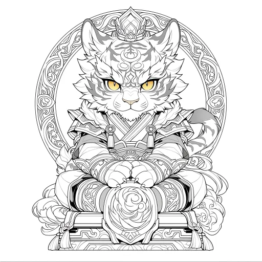 Midjourney Bot 更新时间:2026-03-24 00:10白虎: 杰作,最佳质量,超高细节,Q版山海经白虎拟人,中式古风,白虎特征融入人偶造型:虎纹发冠、形如山岳之骨,雪毛映金辉,金瞳如秋日残阳,额上王纹燃烧着天命的烙印;审判者之姿,传统汉服,盘腿坐于虎纹基座之上。自云岫踏风而来,身后环绕大型白虎纹圆环装饰。工程蓝图风格,精确工程制图线条,干净利落线稿,对称构图,无元素重叠,无融合,无畸形变形,角色设计稿,黑白金为主色调,点缀黑金虎纹,中式古典美学,线稿风,8K分辨率,竖版构图 --ar 1:1 --stylize 100 --niji 7