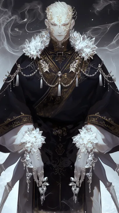 Midjourney Bot 更新时间:2026-03-24 00:11动漫插画,一个俊美动漫蛛形男人,黑袍金线镶边,中国风格的带流苏绣领,对称构图,白色毛绒绒蜘蛛腿,冷白皮,宽肩细腰,宽肩,腹肌可见,水晶链叠层,许多水晶花朵,头发湿漉漉的,磨砂玻璃,水蒸气,动漫美学,黑暗漫画,a,线条流畅,黑色背景 --ar 9:16 --stylize 100 --niji 6 --no no