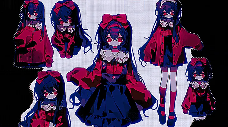 Midjourney Bot 更新时间:2026-03-23 00:08可爱的小女孩,黑色长发,头上戴着红色蝴蝶结发箍,红色眼睛,全身,立绘,多个动态姿势,角色设计,角色表,穿着红色大衣,黑色吊带裙 --ar 16:9 --stylize 100 --niji 7 --sref https://images.gogpt.vip/aigf/m_origin/20260115/2026762/1eoprd35li62arau.jpg --sw 1000 --no Hair,女仆装
