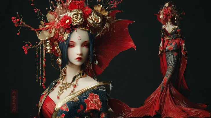 Midjourney Bot 更新时间:2026-03-23 00:19河伯,中国河神,赛博形象,冷酷,俊美,惊天地,美男,美人鱼,三视图,要求正面,侧面,背面的形象。适合做ip, --ar 16:9 --v 7 --stylize 100